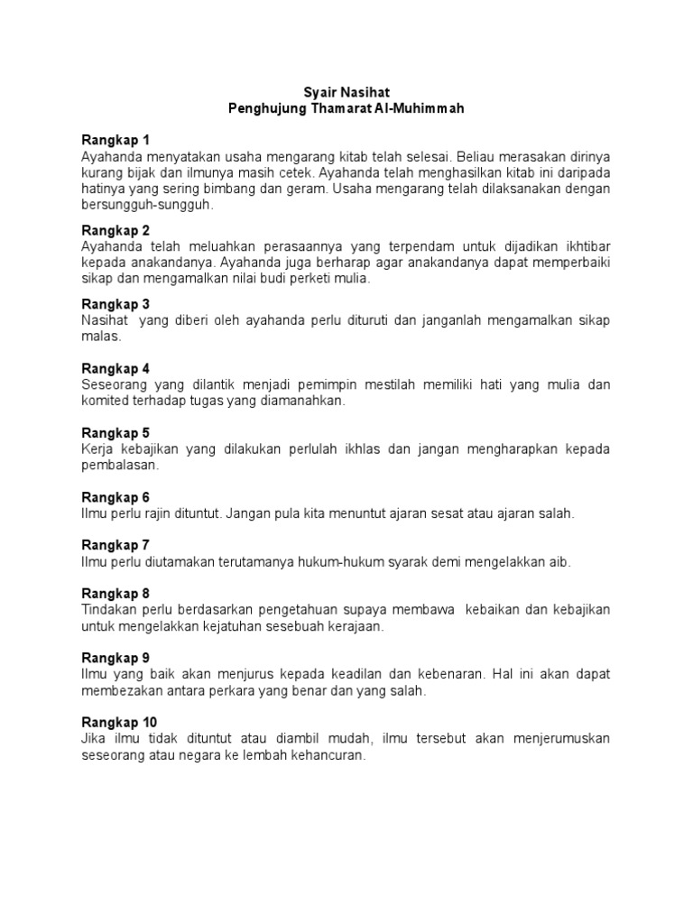Syair Wasiat Ayahanda Siti Zawiyah. Syair Kelebihan Ilmu 1ms 5. Duhai Pentafsir Tingkatan 5 5.